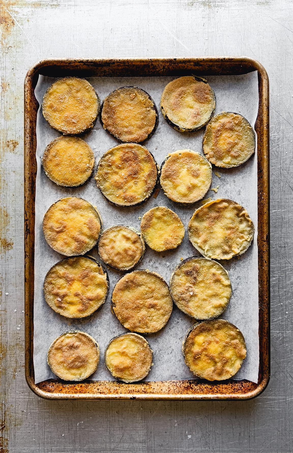 5. Legg de stekte auberginskivene på stekebrettet med kjøkkenpapir mens du steker resten.