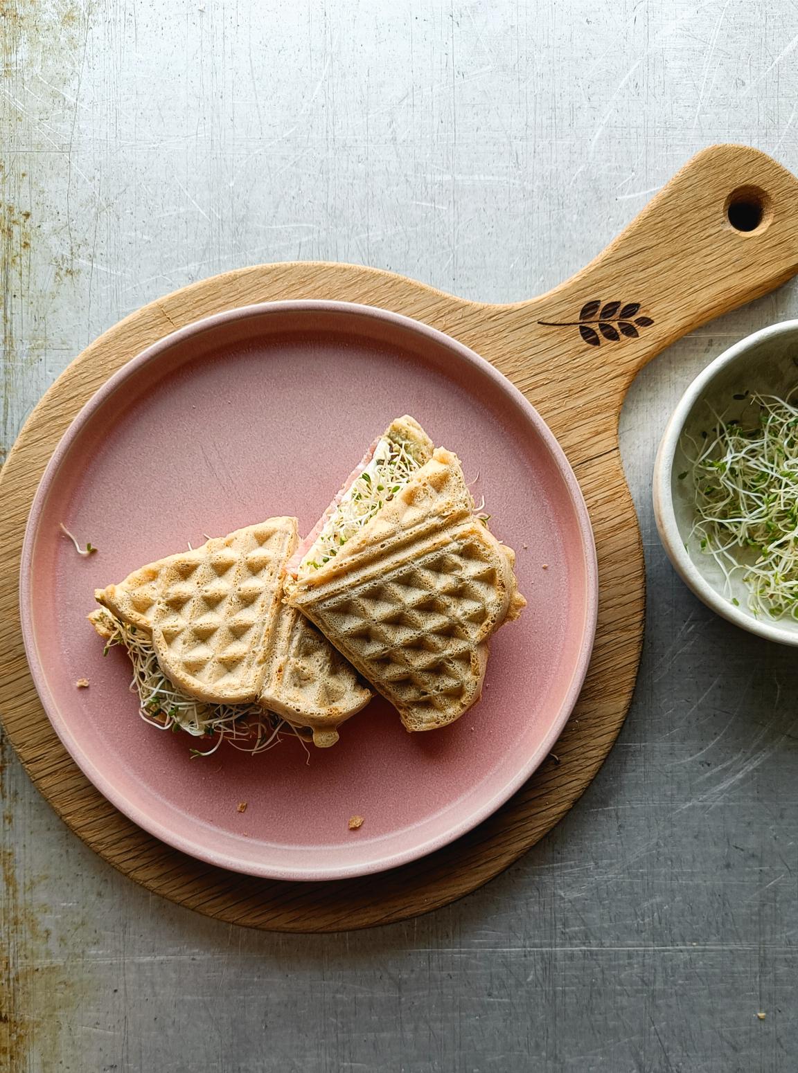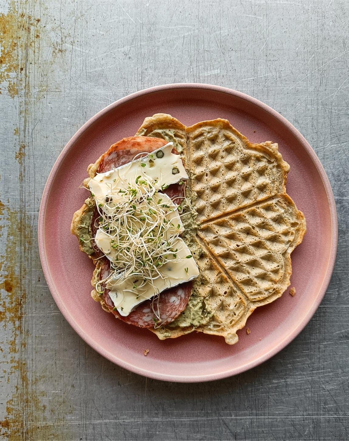 4. Server brødvaflene med ditt favorittpålegg. Også kjempegodt ved siden av salaten til lunsj, eller til å lage vaffeltoast med ost.
