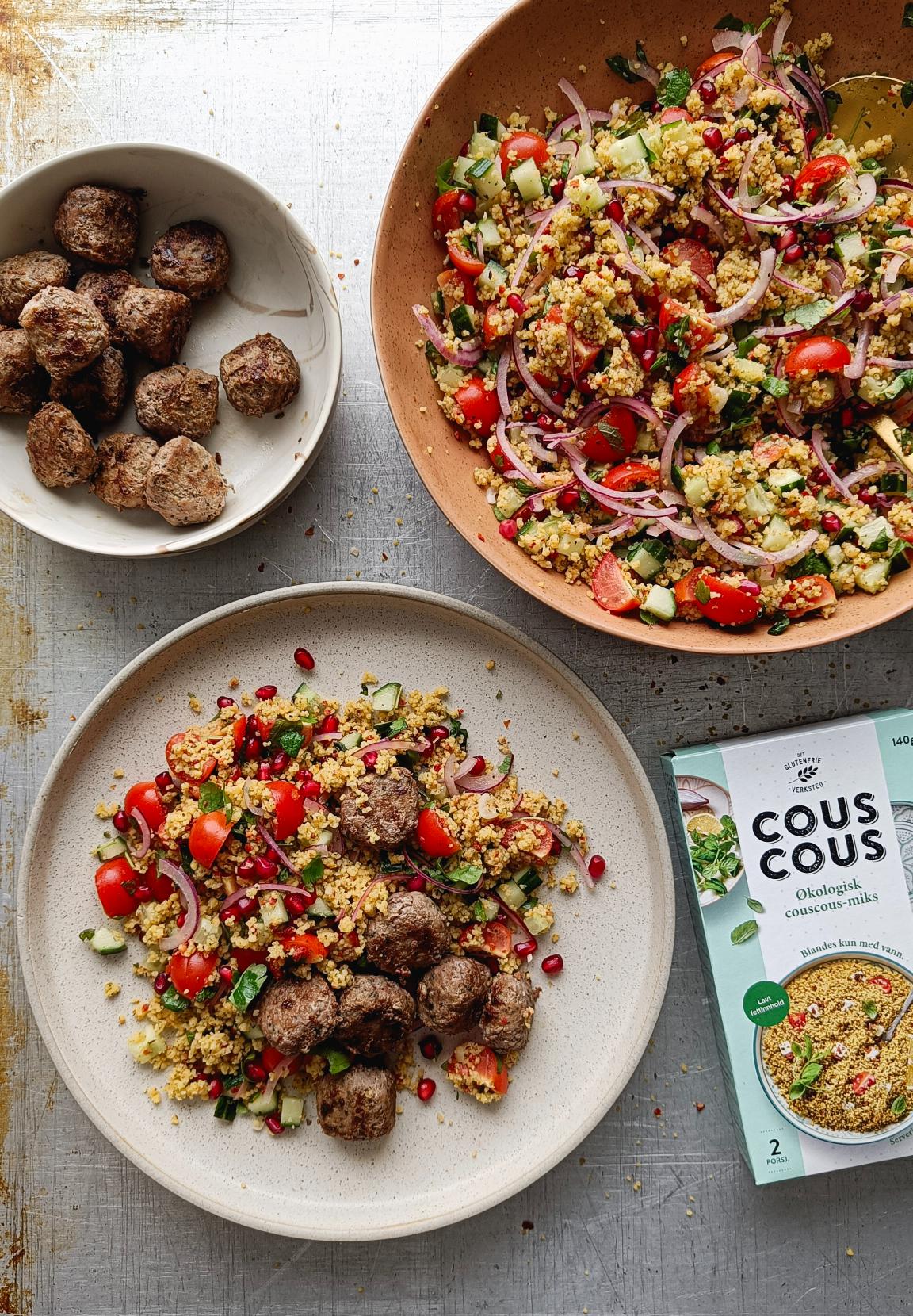 Couscoussalat med kjøttboller