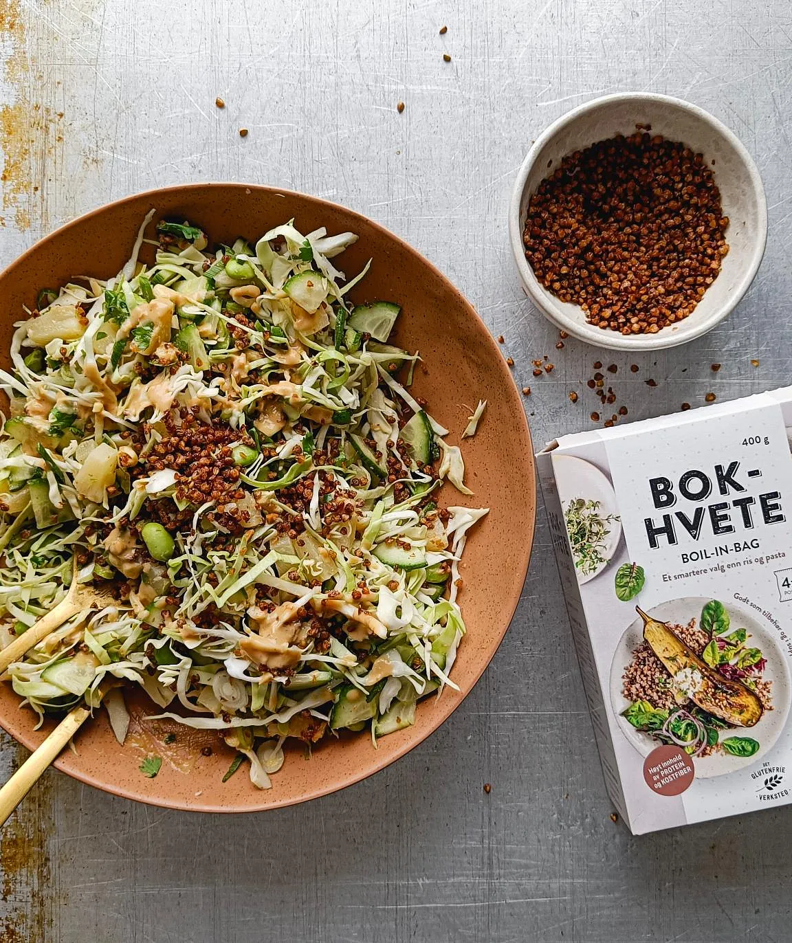 Oppskriften gir to store, eller fire små salater. Sprø bokhvete er fantastisk godt i salater, og denne blir garantert en favoritt!