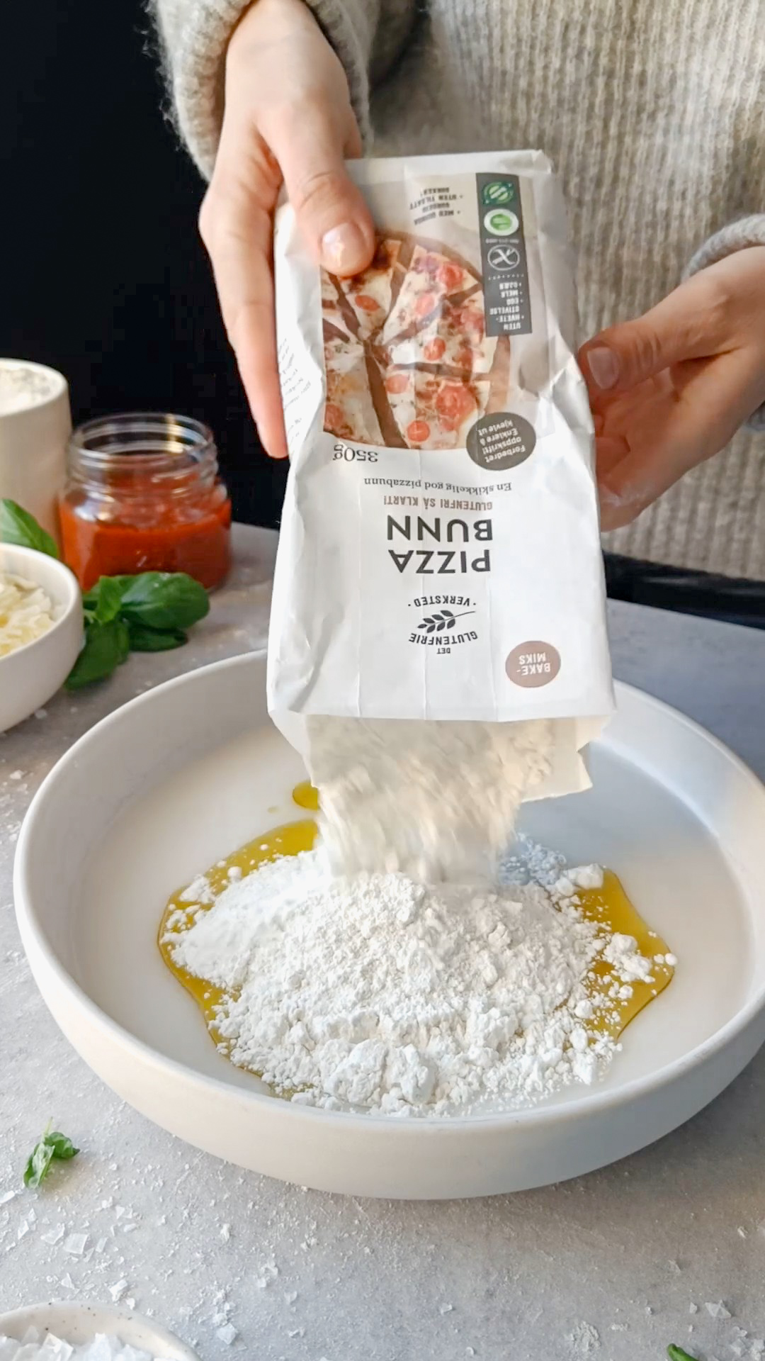 - 1 pose Pizzabunn miks (350 g) Det Glutenfrie Verksted