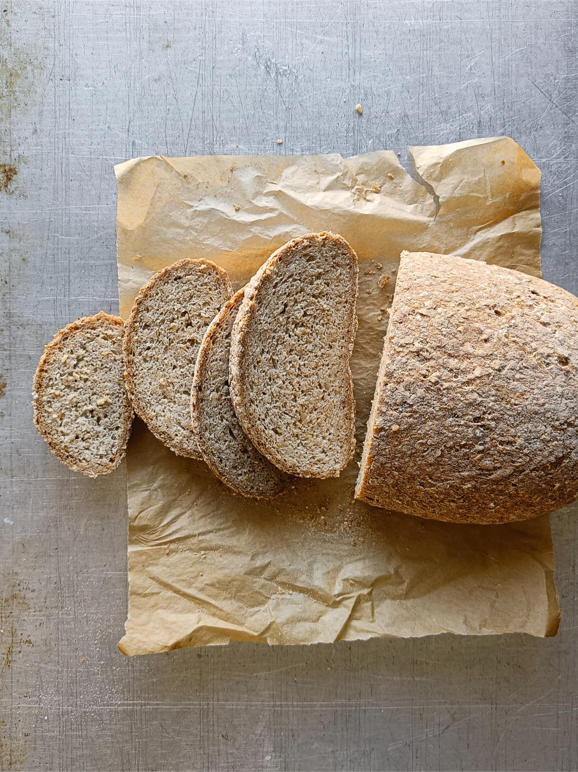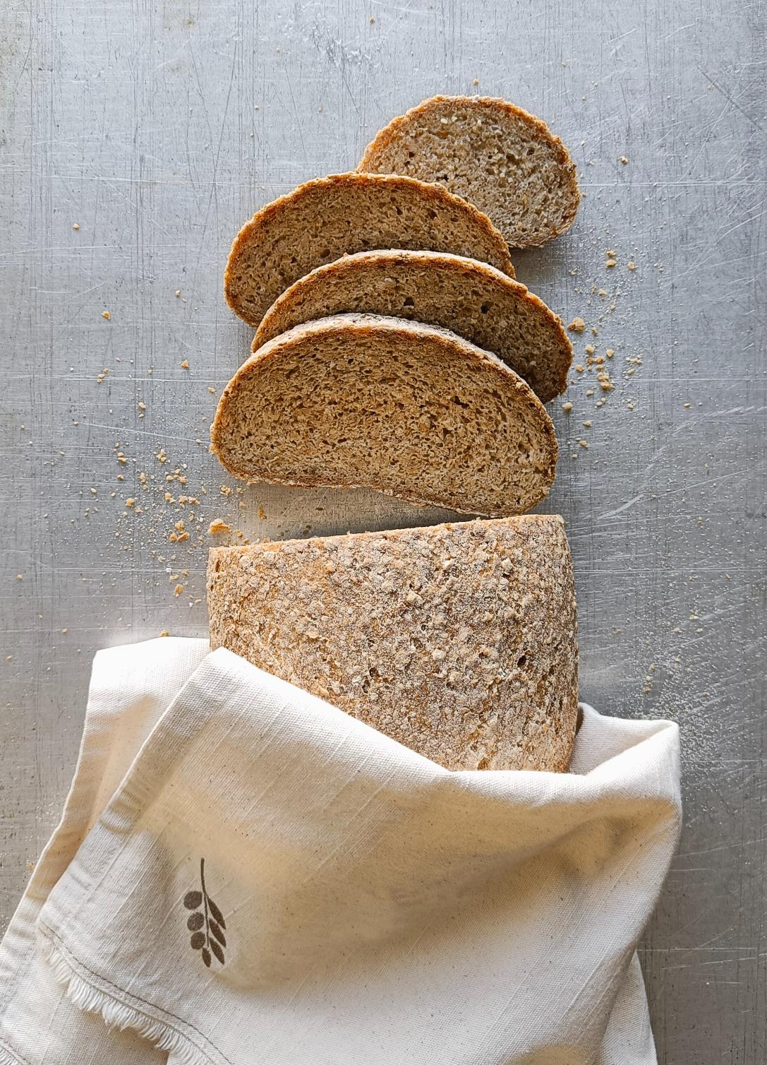 Oppbevaring: Brødet holder seg i 3-4 dager i romtemperatur pakket inn i et rent kjøkkenhåndkle. Etter det bør det skjæres i skiver og fryses.