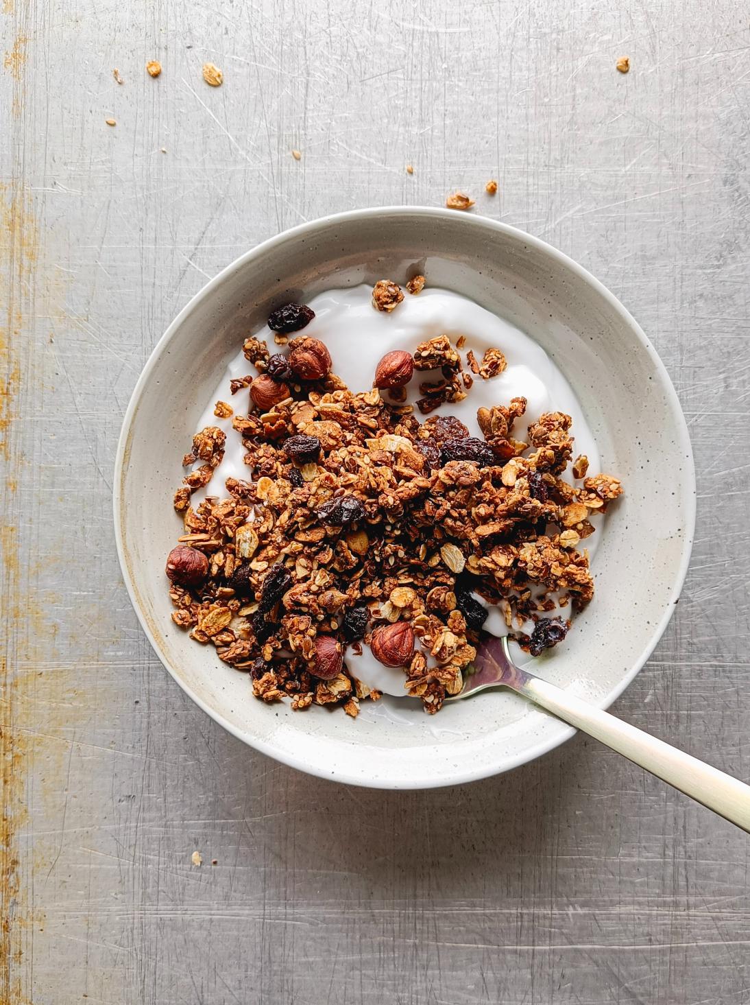 Den blir knasende sprø og gyllen og smaker perfekt sammen med yoghurt eller melk.