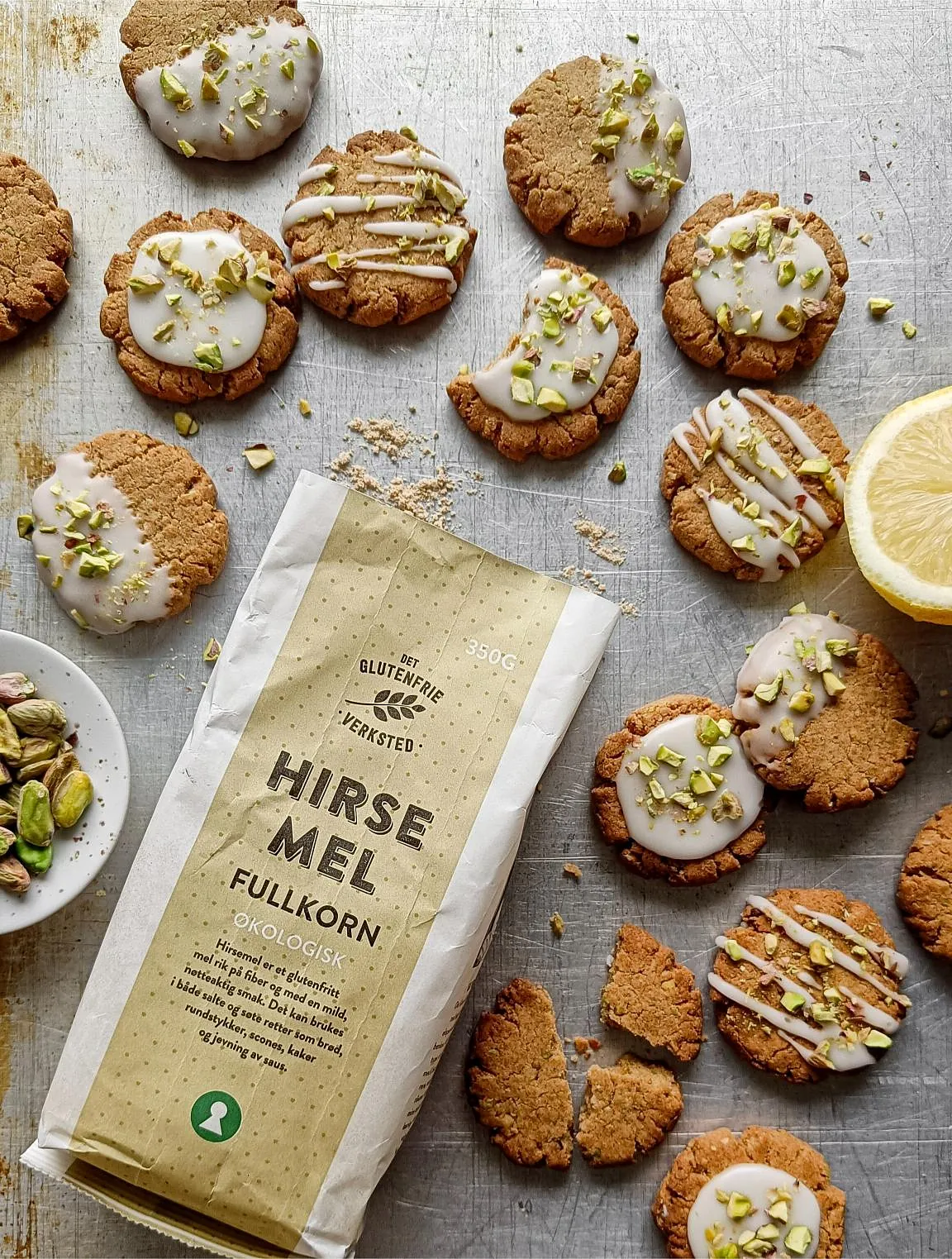 Disse rustikke hirsekjeksene har en smak som minner om biscotti. Kjeksene er naturlig søtet og veganske, og kan derfor nytes av de fleste. De har nydelig smak av pistasj og sitron.