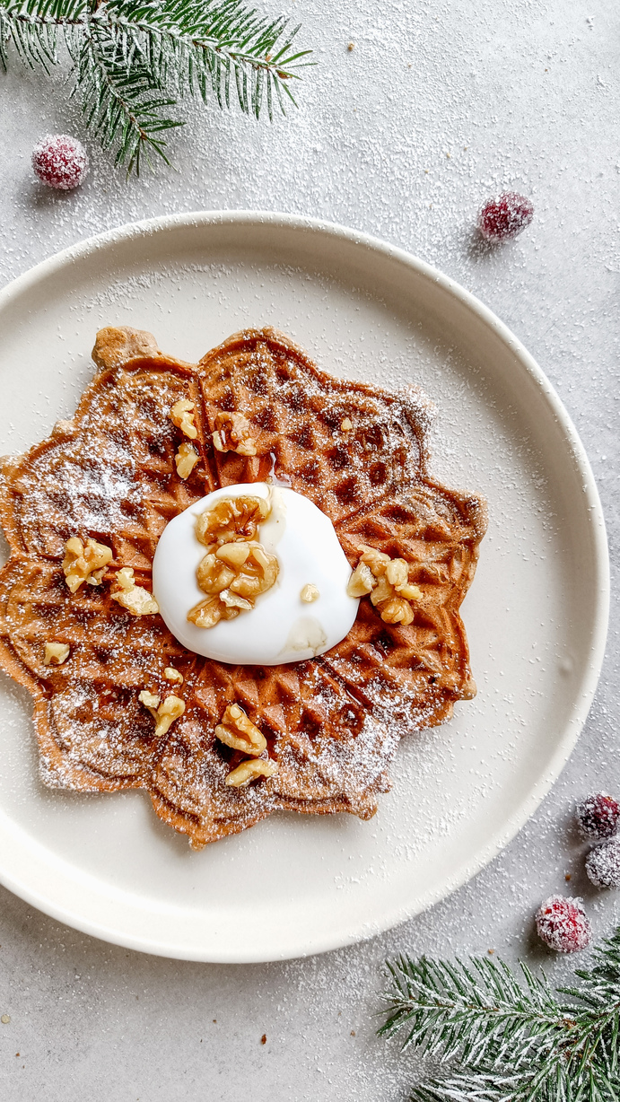 Bak den 24. luken i adventskalenderen finner du oppskrift på nydelige vafler med pepperkakesmak.
