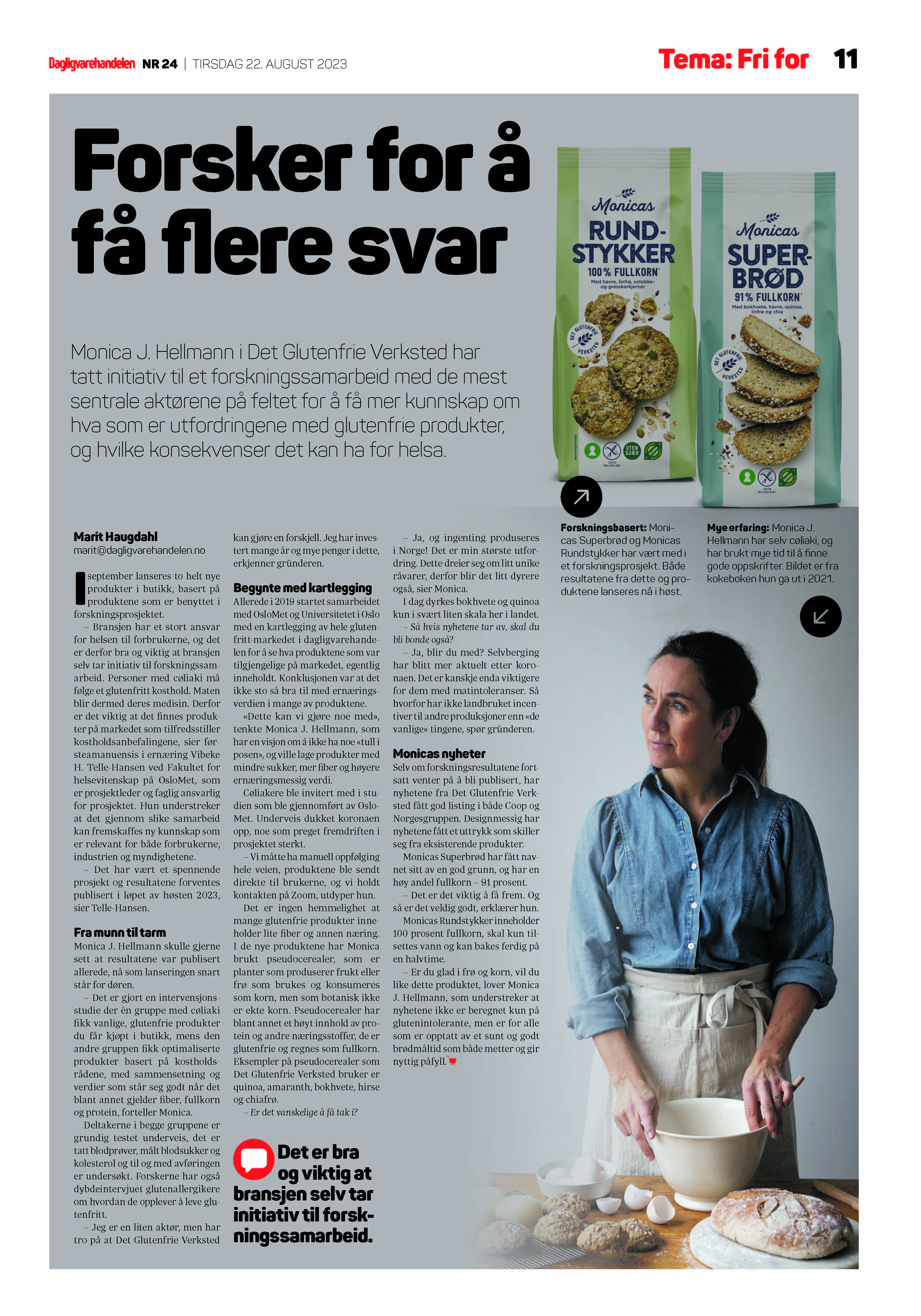 Nå er studien avsluttet og produktene lanseres i disse dager; Monicas Superbrød og Monicas Rundstykker begge med høyt næringsinnhold, og inneholder mye protein, fiber og fullkorn.