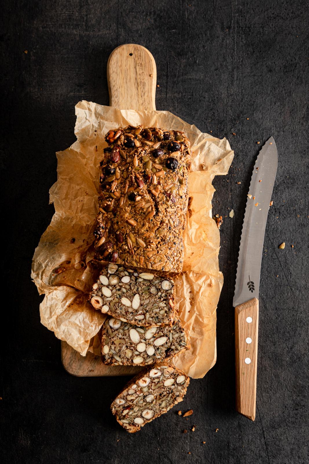 Dette er et holdbart brød helt uten mel og gjær, kun med nøtter og frø og det trenger heller ingen hevetid. Veldig godt!