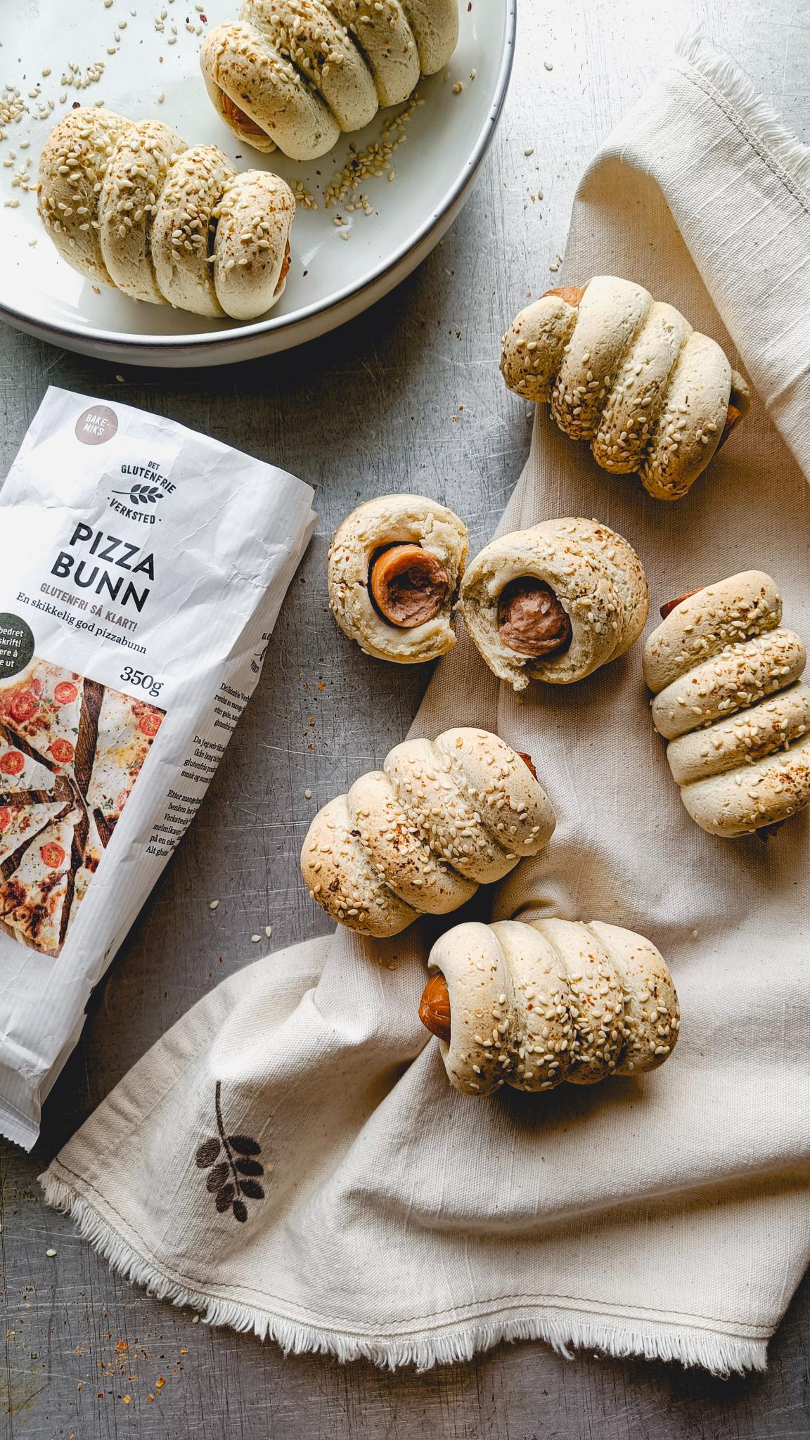 Raske pølsehorn toppet med sesamfrø og chiliflak. Disse passer perfekt på tur eller i matpakken. Smaker alltid godt og er også koselig å lage sammen med barna.
