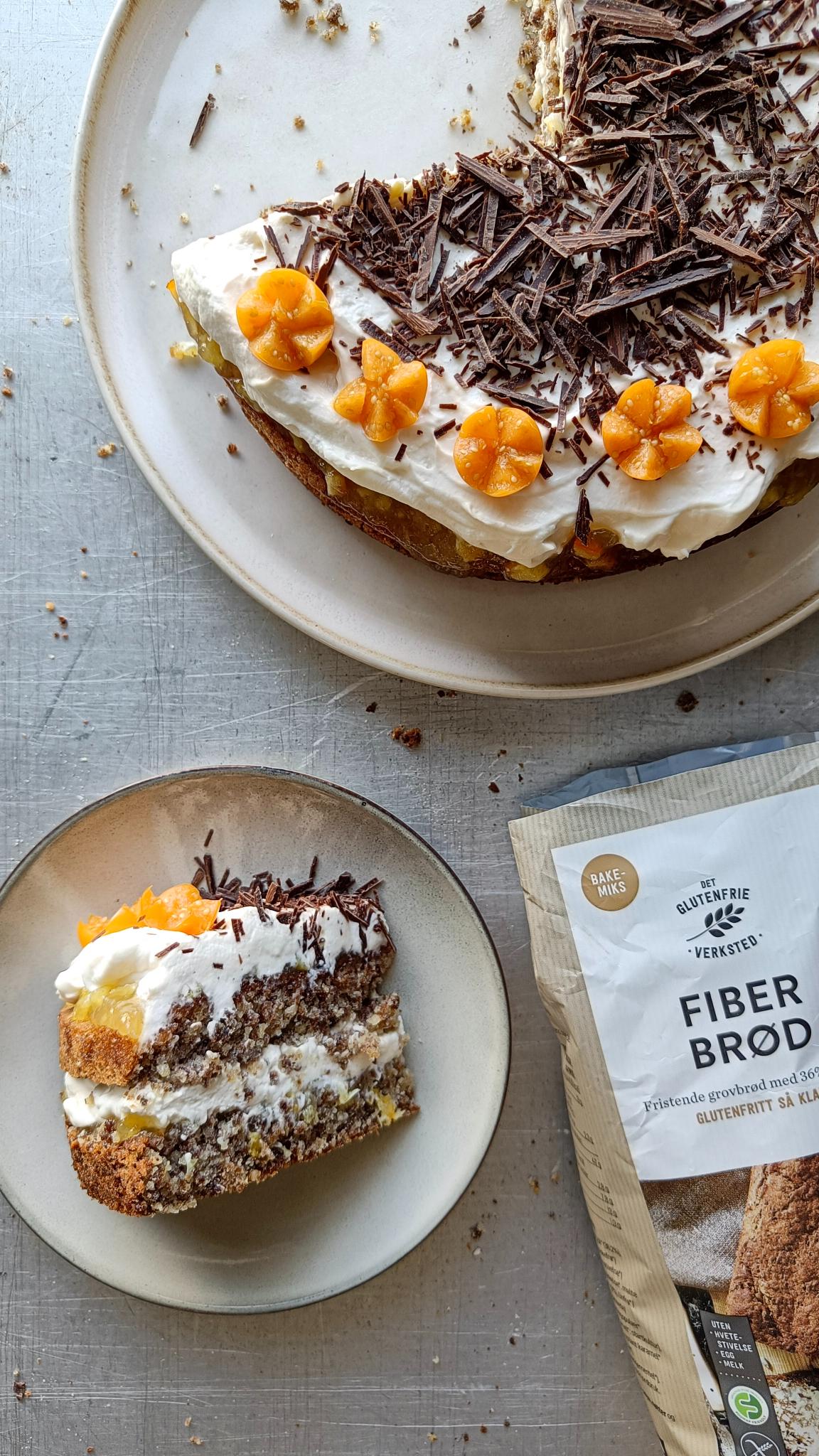 Rugbrødslagkage eller brødtorte, er en dansk klassiker. Vi har laget en glutenfri variant med vår oppskrift på glutenfritt “rugbrød”.