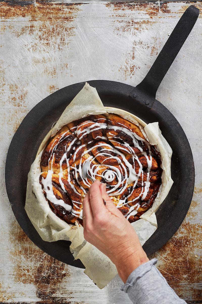 • Lag melisglasur og dekorer snurrene med glasur og ristede hasselnøtter