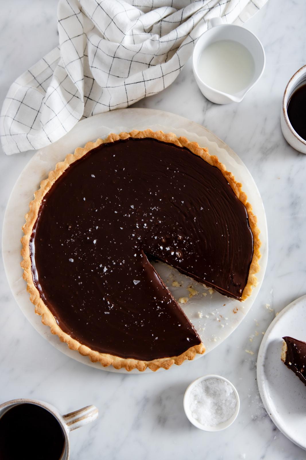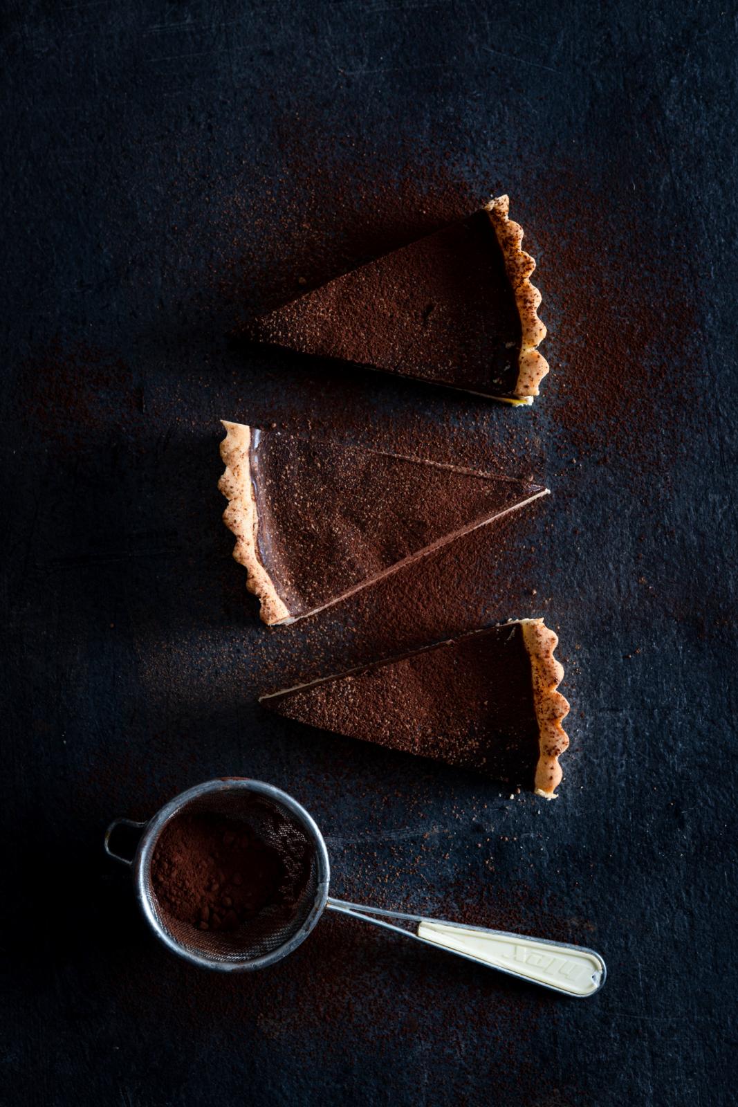 La terten stå til avkjøling i 1-2 timer til den har stivnet. Strø litt havsalt og et dryss kakaopulver over og server.