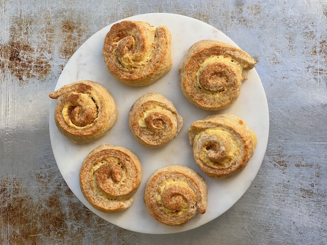 Snurrer med vaniljekrem og epler