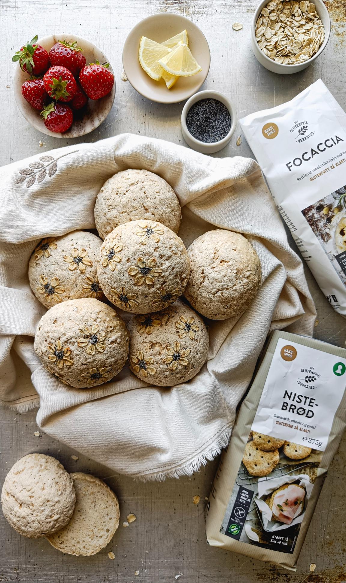 Rundstykkene er saftige, luftige, og raske å lage ved å blande vår Nistebrød- og Focacciamiks. De søte havreblomstene er inspirert av @sourdoughwithrebecca 🏵️ og gjør disse rundstykkene ekstra søte, og hyggelig både å bake og servere.