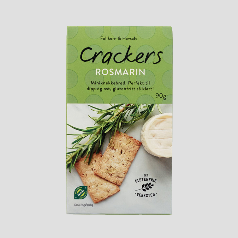 Miniknekkebrød laget med fullkorn og havsalt. Lett krydret med rosmarin. Perfekt til dipp, ost eller suppe. Glutenfritt og økologisk.Smaker godt som de er eller som perfekt tilbehør.
